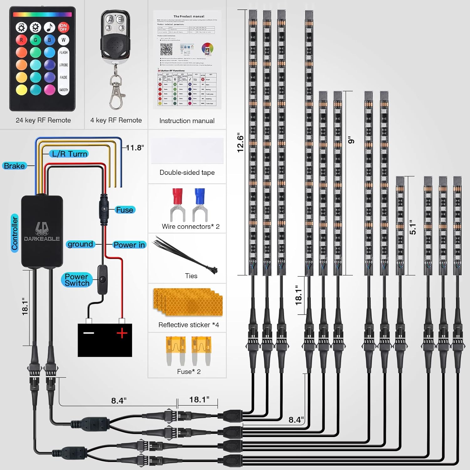 Motorrad Led Lichtkit | 12 Stück Mit Bremslicht Und Blinker