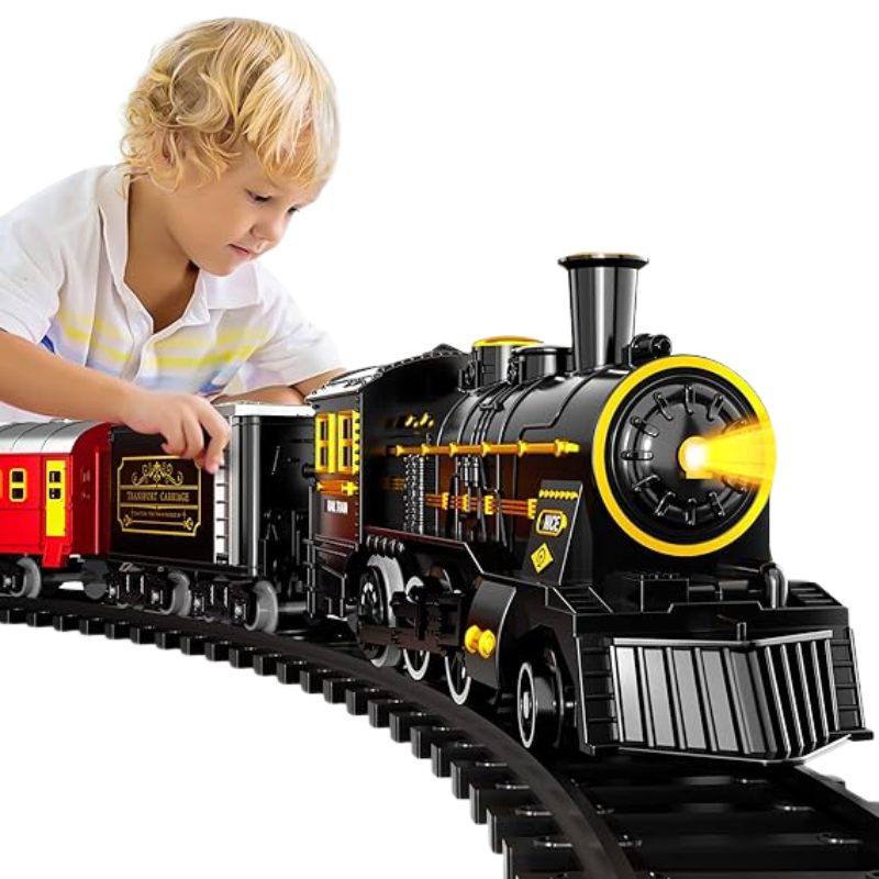 Erwecke den Zauber von Weihnachten zum Leben mit diesem bezaubernden elektrischen Zug-Set, das fröhliche Wintermomente für die ganze Familie schafft! Mit bunten Waggons, leuchtenden Lichtern und realistischen Geräuschen fährt der festliche Zug um deinen Weihnachtsbaum und erfüllt dein Zuhause mit Freude und Weihnachtsstimmung.