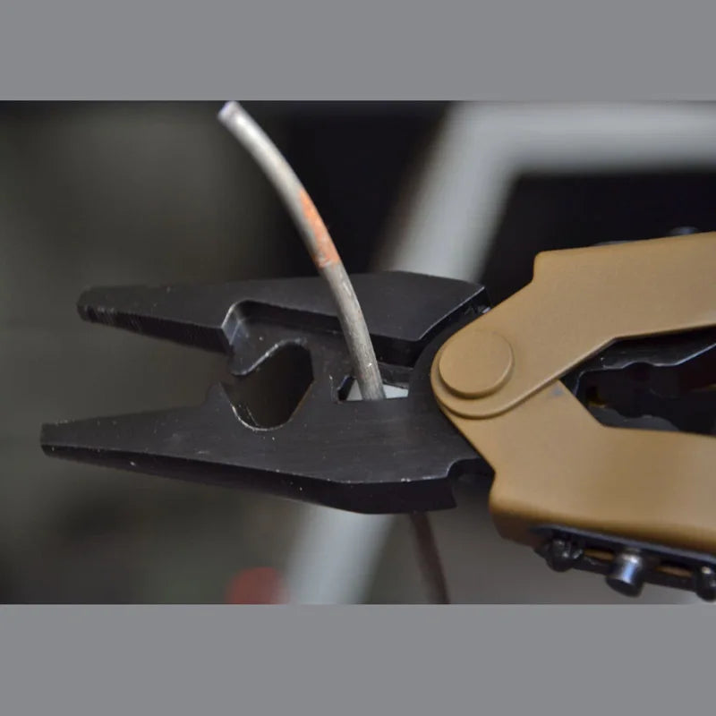 • Mehrere integrierte Werkzeuge, darunter Messer, Zange, Schraubendreher, Flaschenöffner und mehr