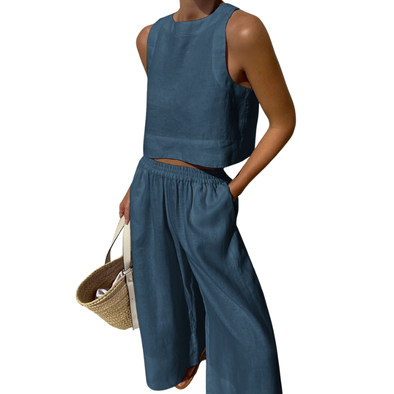 Damen Ärmelloses Zweiteiliges Set | Luftige Hose mit weitem Bein