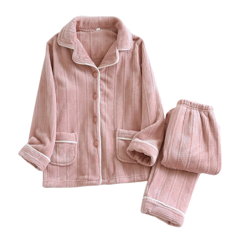 Damen Schlafanzug Set | Warme Winter Nachtwäsche mit Knopfverschluss