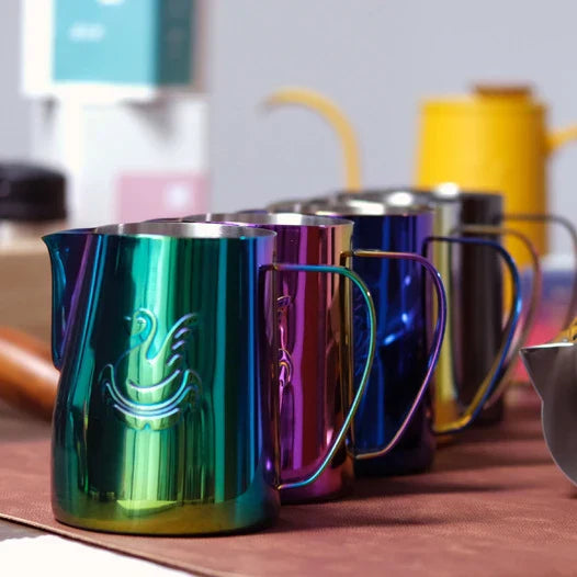 Holen Sie sich Café-Qualität nach Hause mit diesem 600ml Milchschaumkännchen aus Edelstahl. Mit einem eleganten Schwanenhals-Ausgießer ausgestattet, ermöglicht es präzises Eingießen – das ideale Werkzeug für Espresso, Cappuccino und Latte Art. Langlebig, stilvoll und leicht zu reinigen – ein Muss für jeden Kaffeeliebhaber.