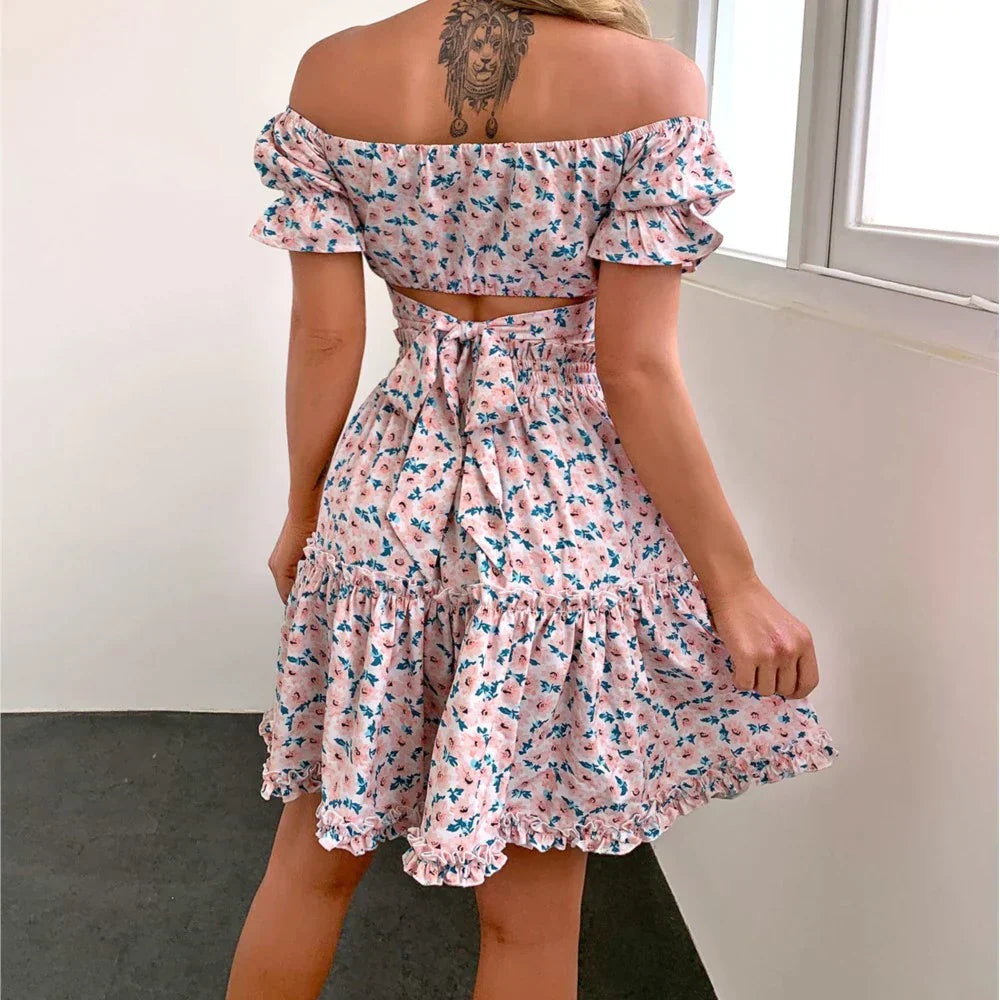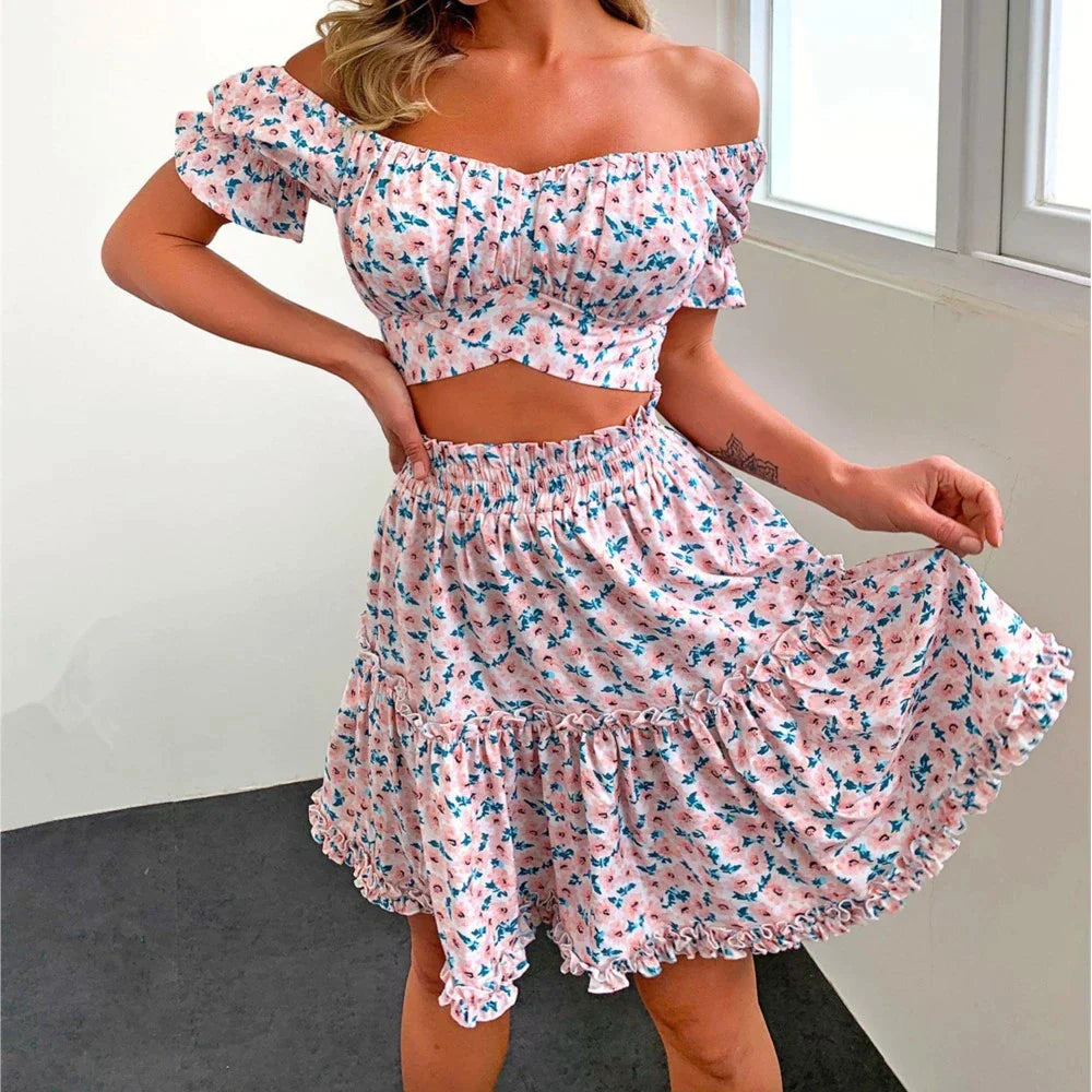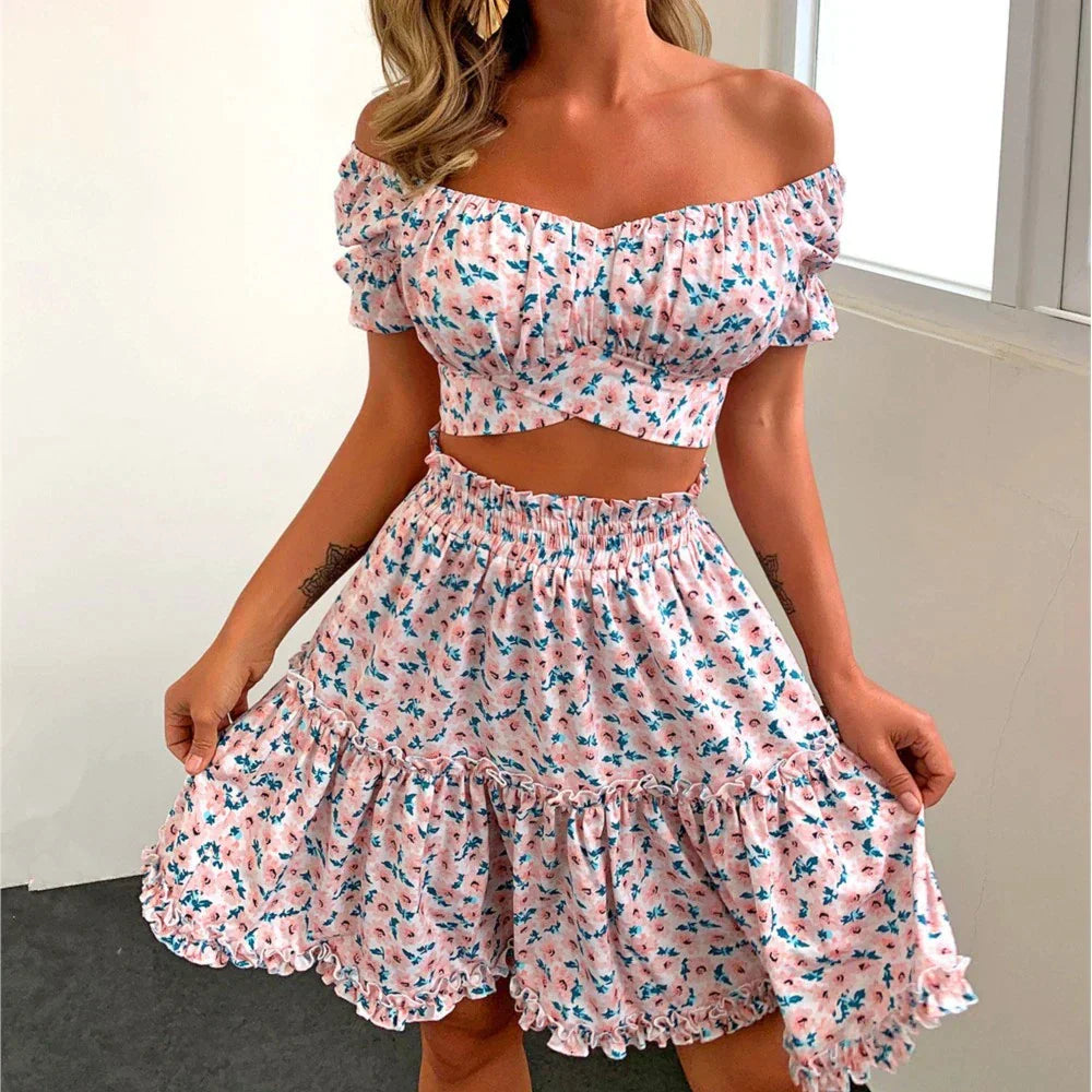 Tauche ein in mühelose Eleganz mit dem Abegail Bohemian Floral Set. Dieses Set besteht aus einem femininen, schulterfreien Crop-Top mit verspieltem Rückenknoten, kombiniert mit hochtaillierten Shorts, alles verziert mit einem zarten Blumenmuster. Ideal für warme Tage, Gartenpartys oder zwanglose Ausflüge bietet dieses Ensemble sowohl Komfort als auch Stil.