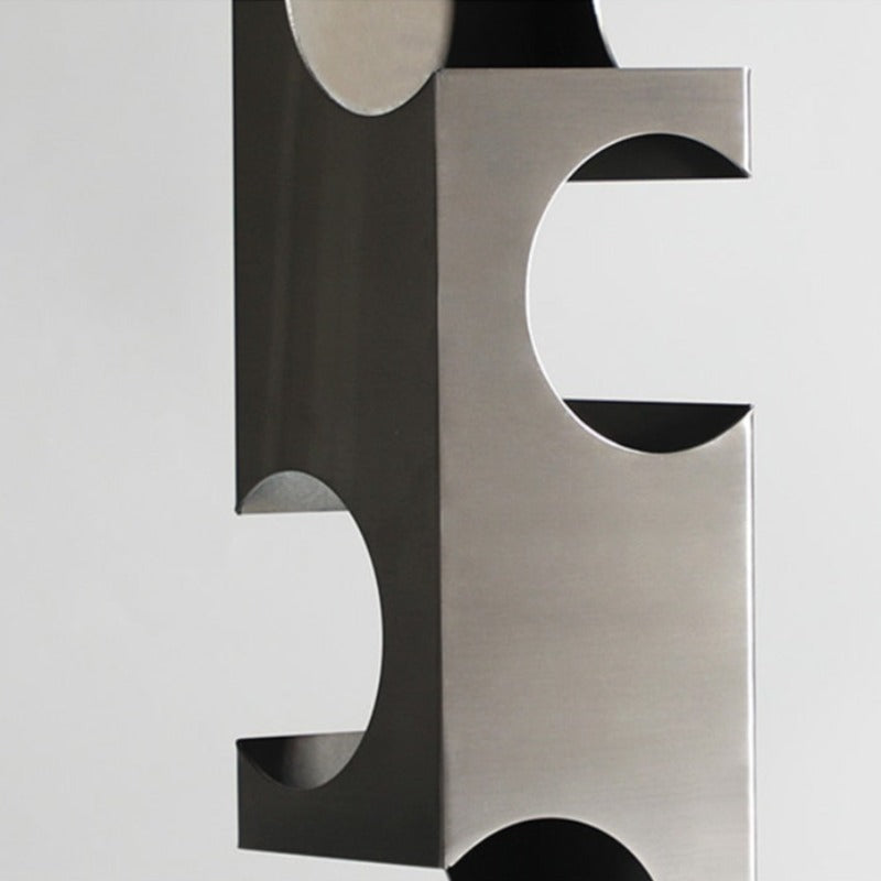 Verwandeln Sie Ihre Arbeitsfläche in eine stilvolle Weinpräsentation mit dem Garduru Curves Metall-Tisch-Weinregal. Das einzigartige, bandförmige Design hält bis zu vier Flaschen sicher und verleiht jeder Küche, Bar oder jedem Essbereich einen modernen, kunstvollen Akzent.