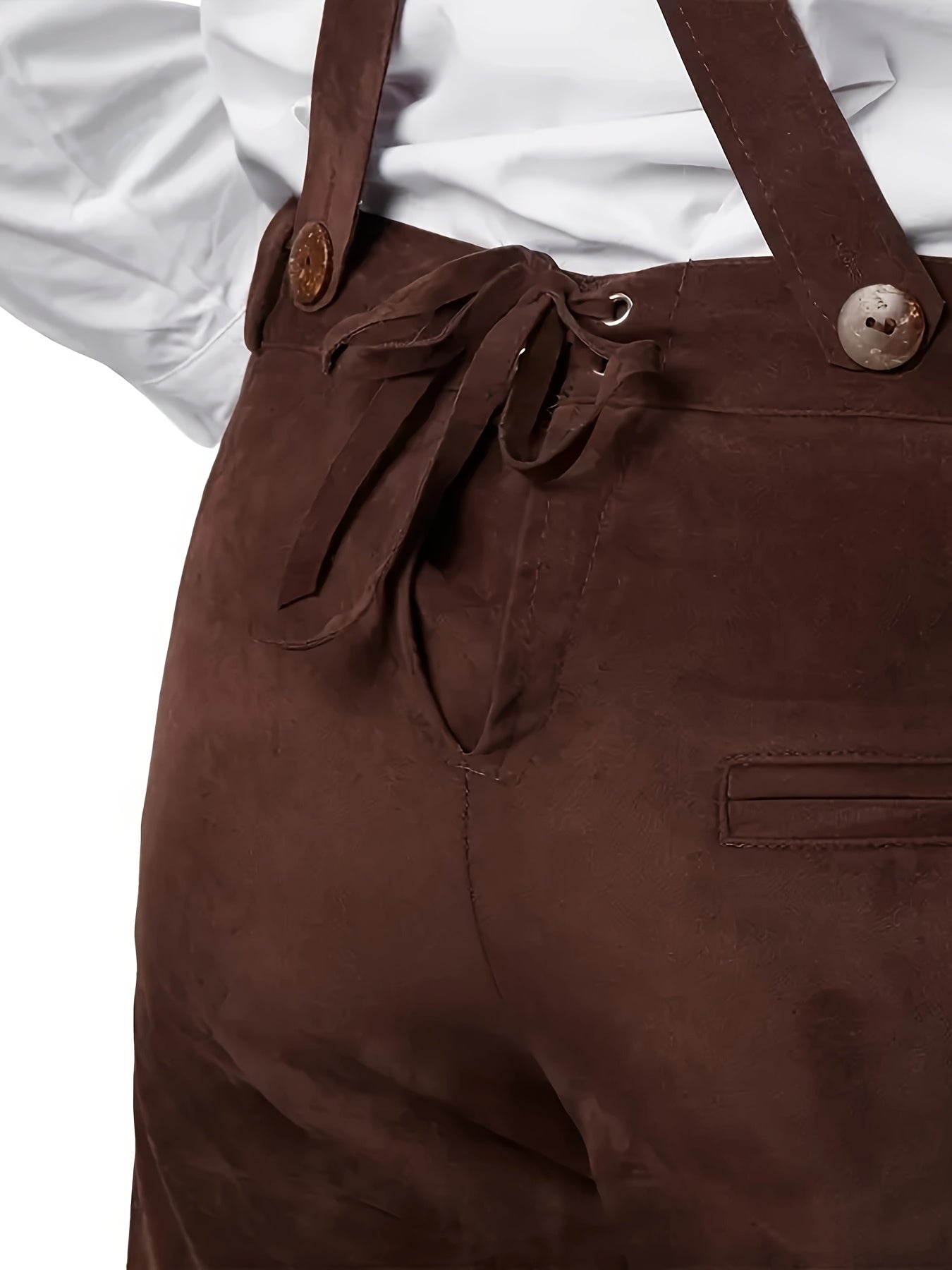 Herren Oktoberfest Lederhosen Kostüm | Bestickt mit Hosenträgern