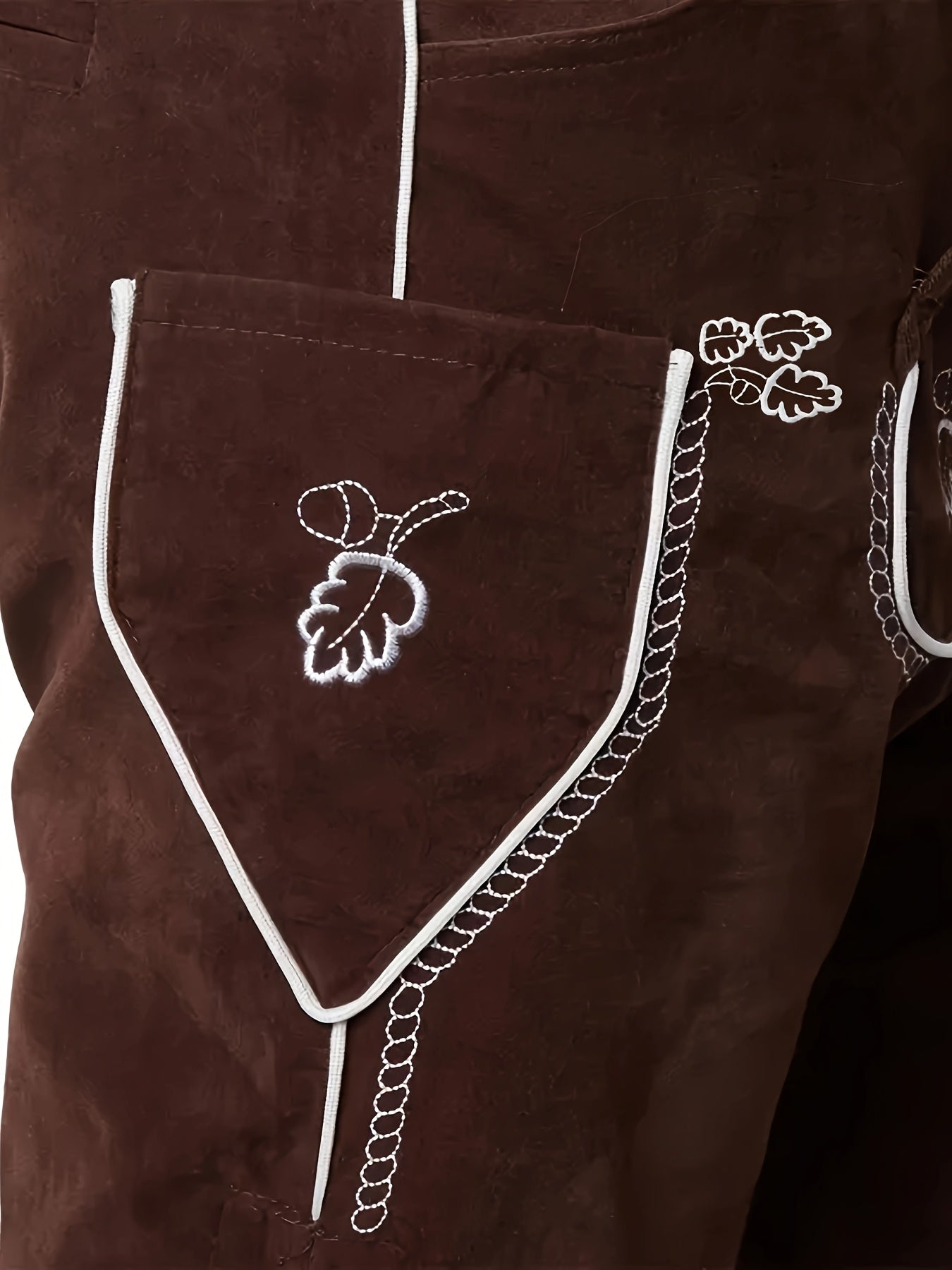 • Authentisches bayerisches Lederhosen-Design mit traditioneller Stickerei