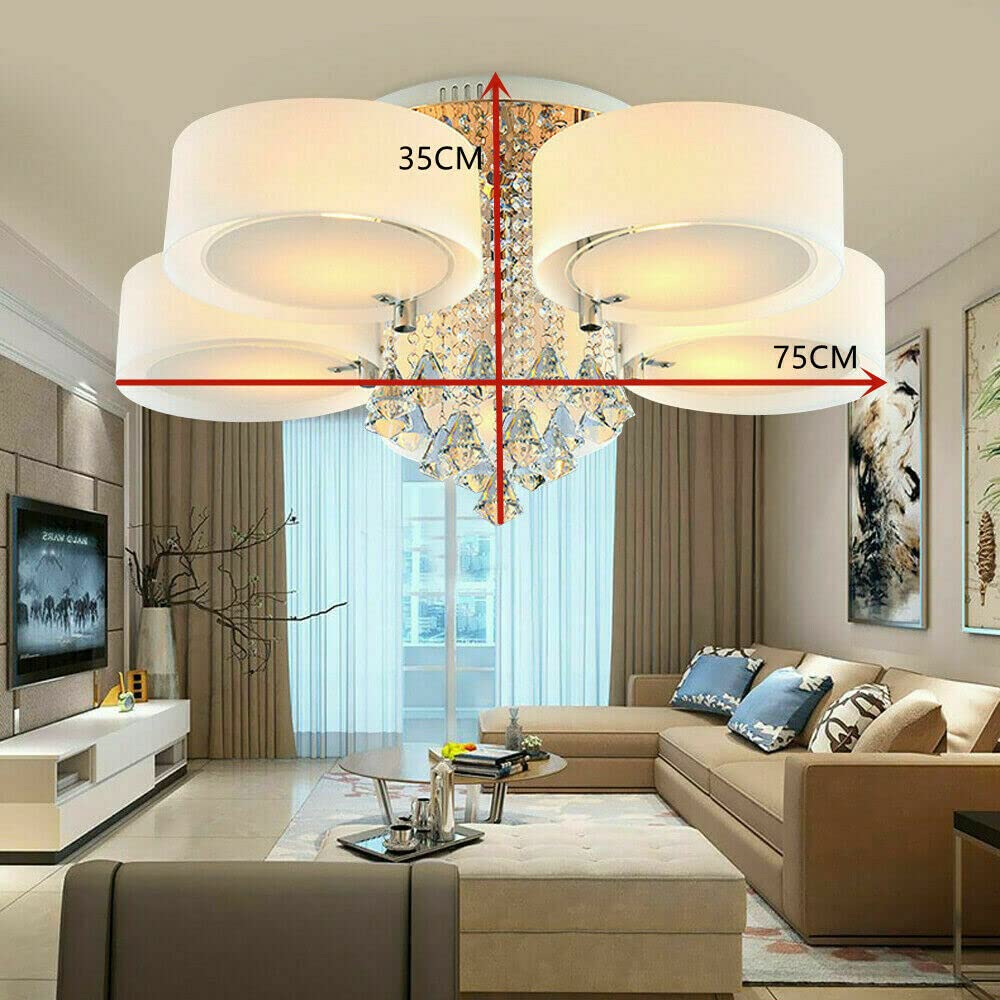 Der Moderne Kristall-Deckenleuchter vereint zeitgemäßes Design mit luxuriösem Glanz. Mit fünf strahlenden Lichtquellen bringt dieser Kronleuchter einen Hauch von Raffinesse in jeden Raum. Die mitgelieferte Fernbedienung ermöglicht eine mühelose Anpassung der Lichtatmosphäre und macht ihn ideal für verschiedene Umgebungen.